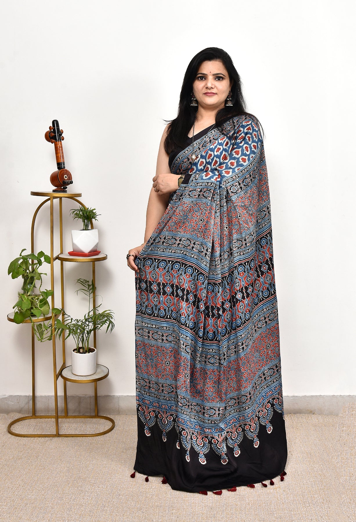 ELORAA: AJRAKH HANDBLOCK MODAL SILK SAREE