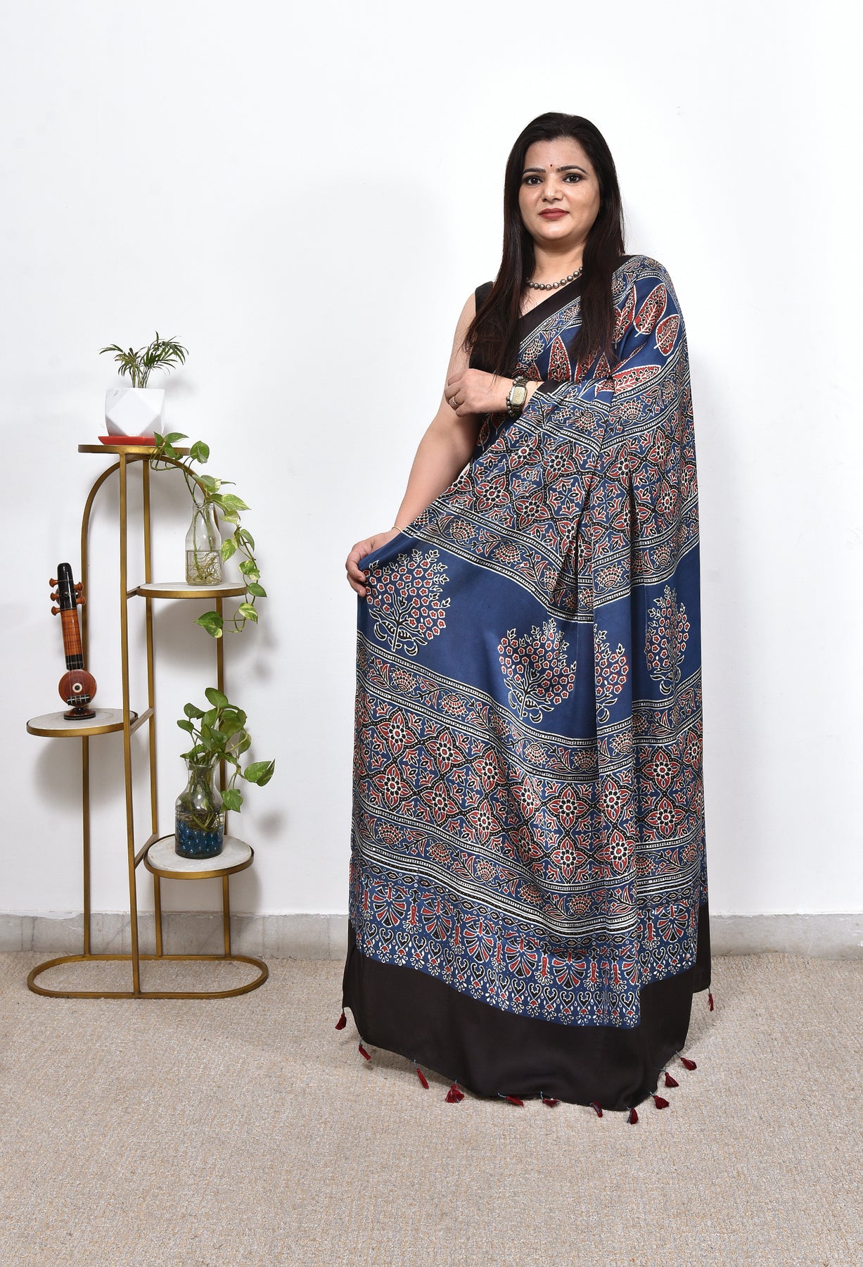 LOBHA : AJRAKH HANDBLOCK MODAL SILK SAREE