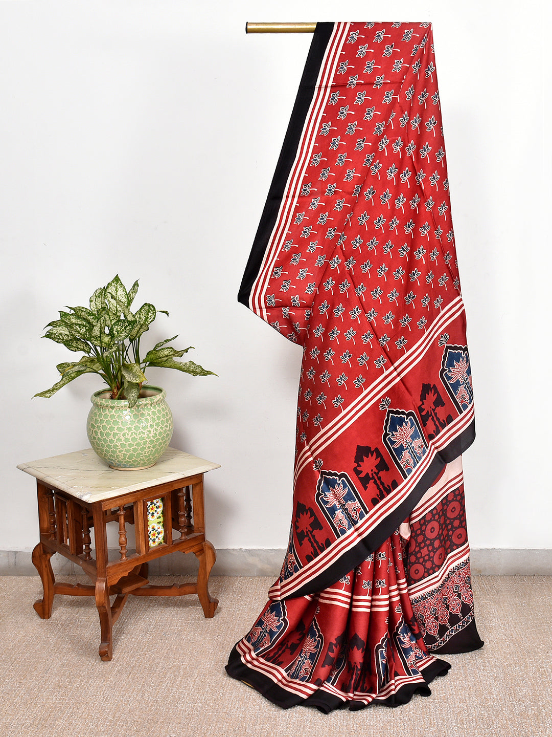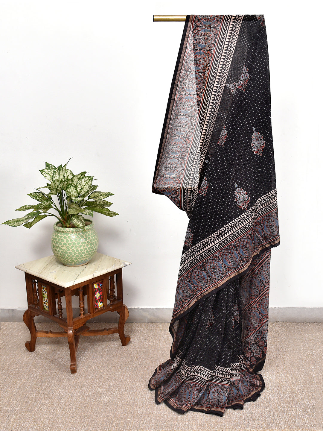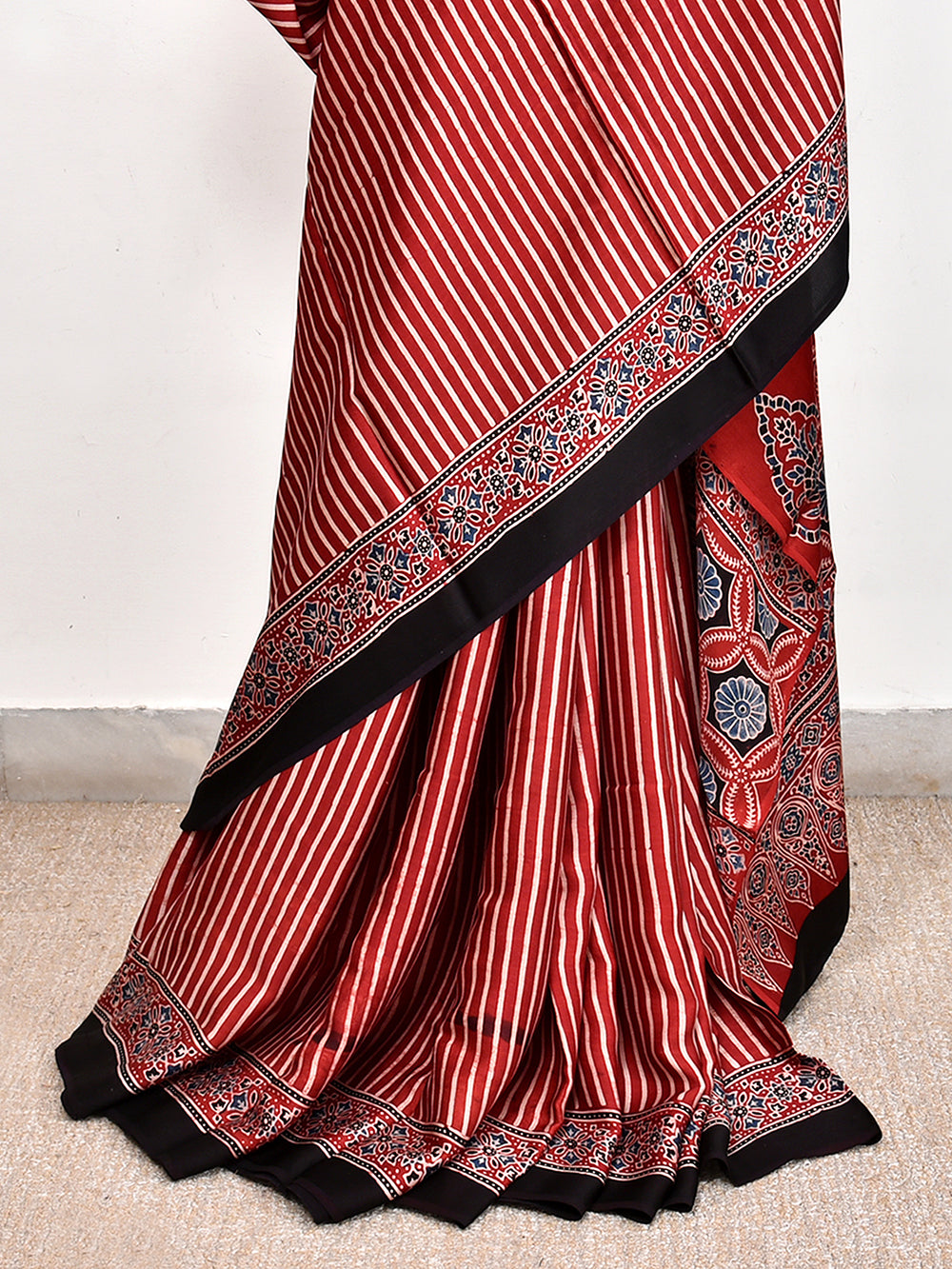 - Authenticity Guaranteed: Each Ajrakh Silk Saree is a unique creation, handcrafted with love and care. Buying directly from the artisans ensures you receive an authentic piece, reflecting the unique artistry of the creator.