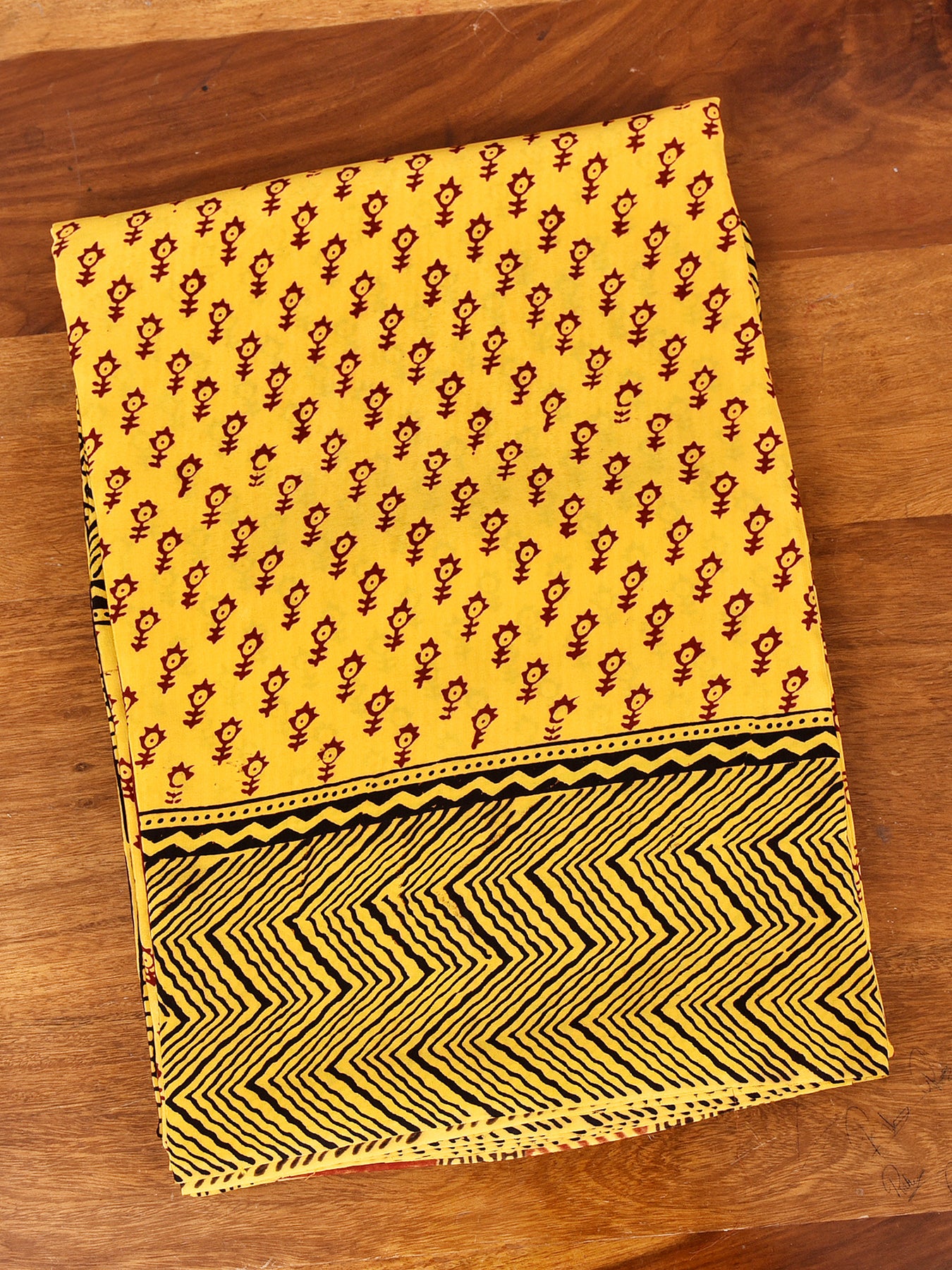 Please note this product is handcrafted by Indian artisans with environment friendly dyes. There might be slight irregularities and unevenness in colour and prints which make it an exquisite piece, proclaiming it to be completely handmade. Saree may bleed in initial washes |
