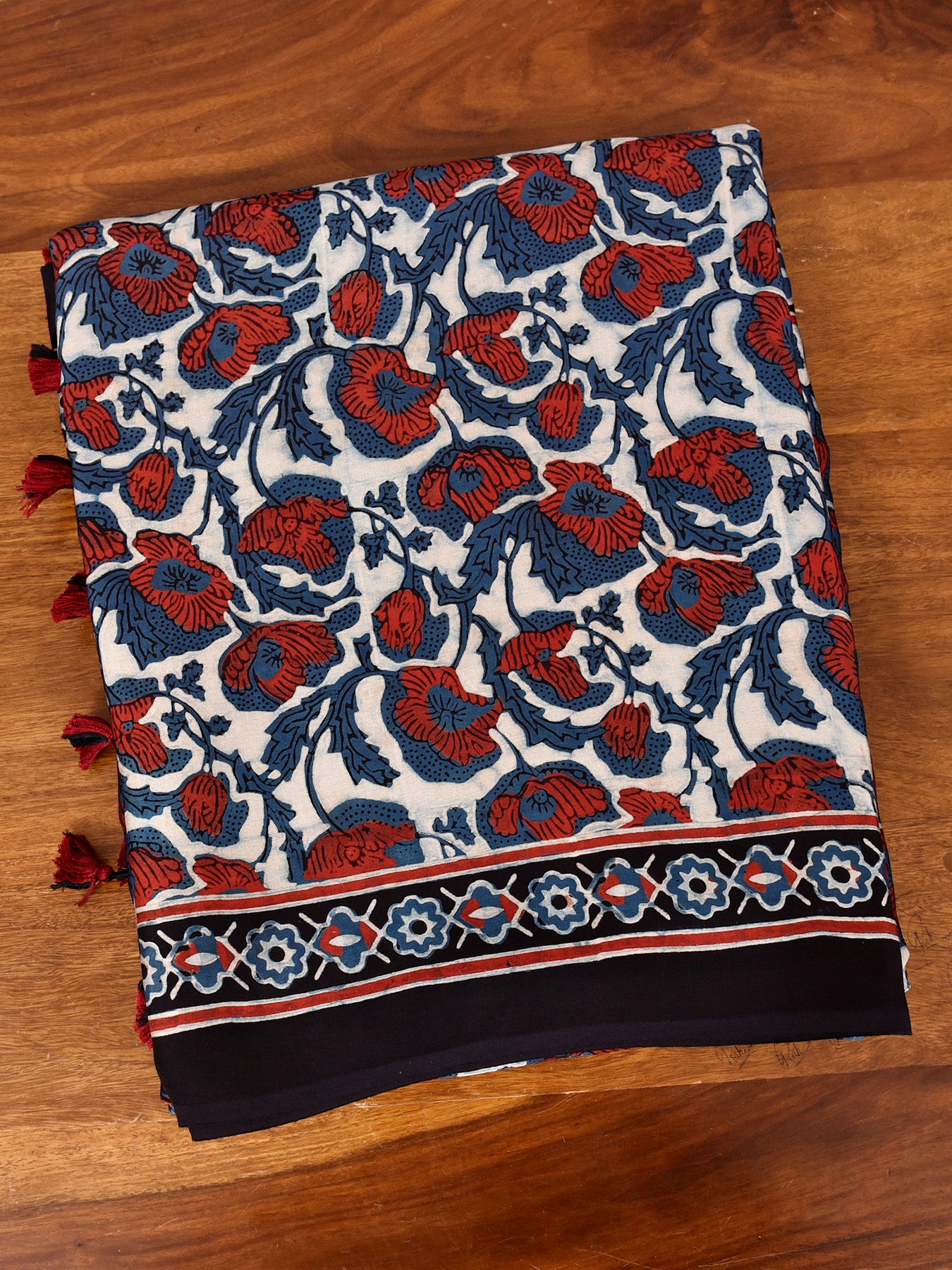 TRAJIKA : AJRAKH HANDBLOCK MODAL SILK SAREE