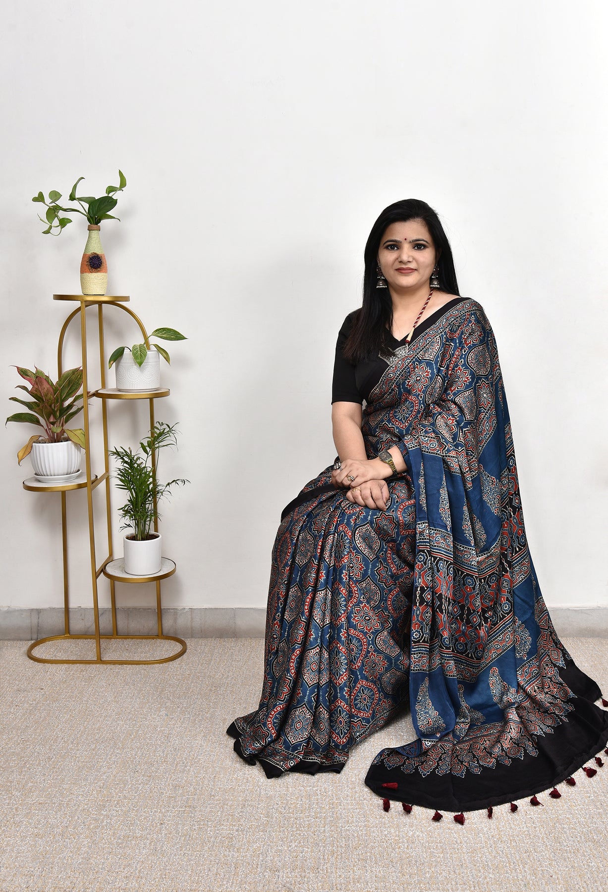 KAMAKSHI : AJRAKH HANDBLOCK  MODAL SILK SAREE