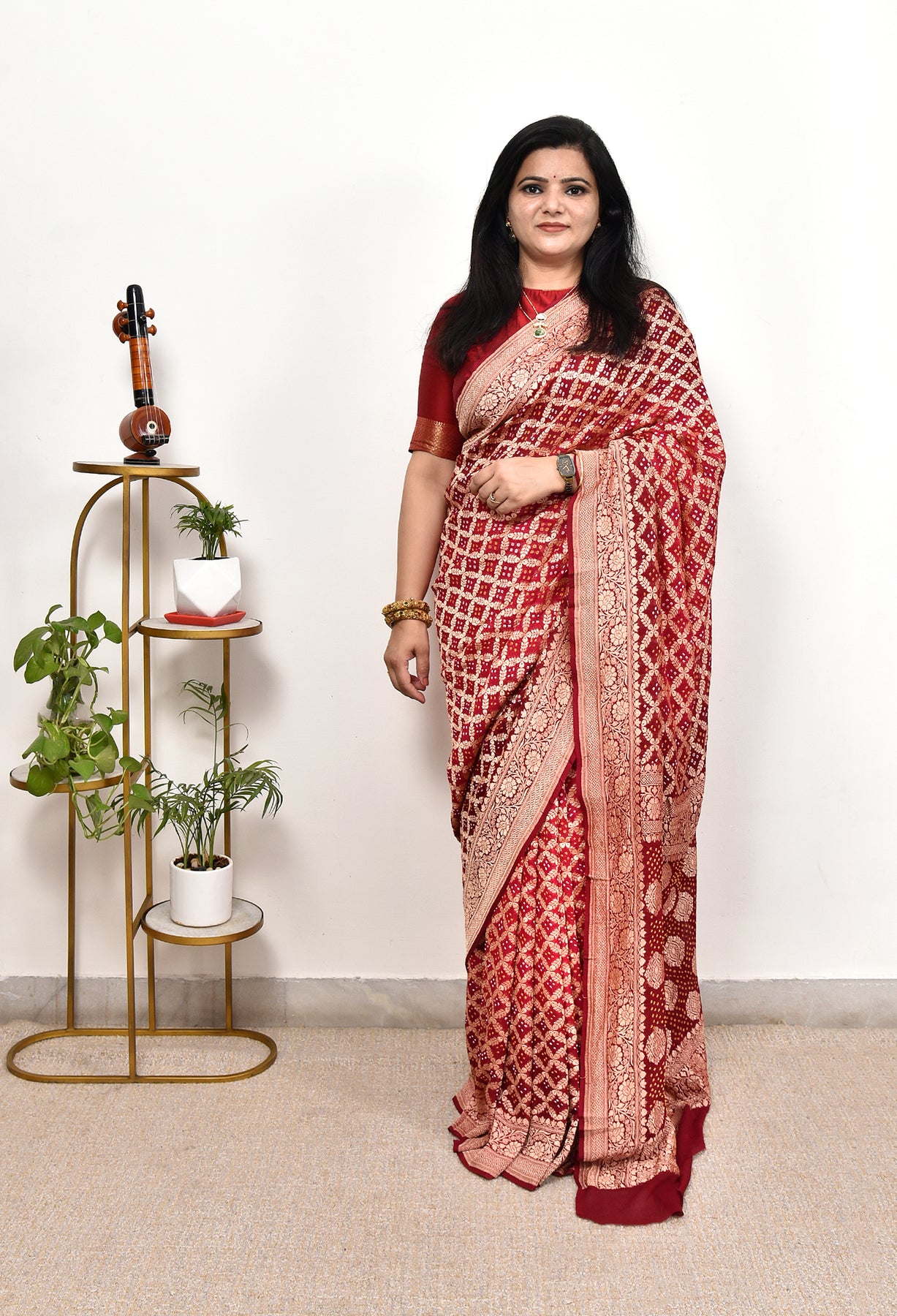 NIHARIKA : GEORGETTE JANGLA JAAL RAI BANDHEJ SAREE
