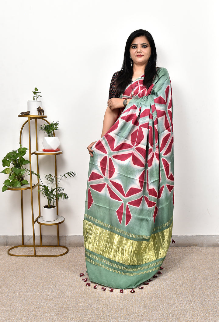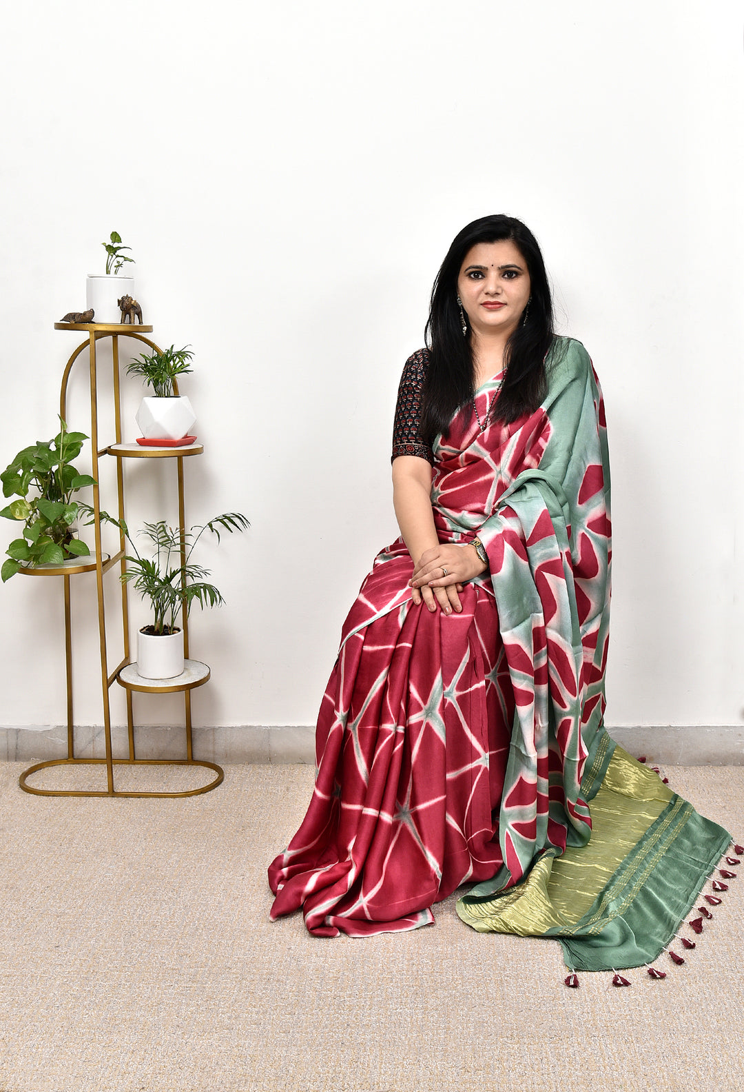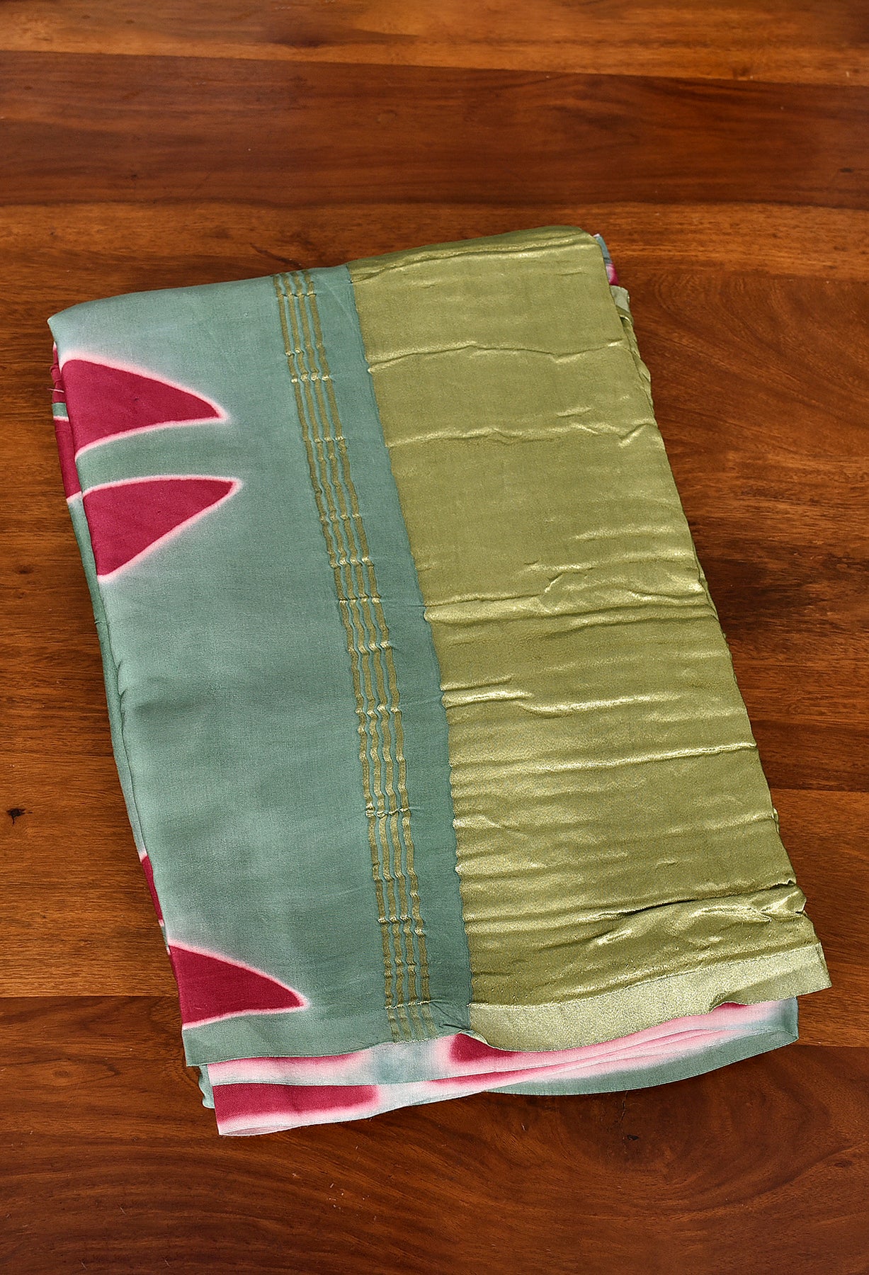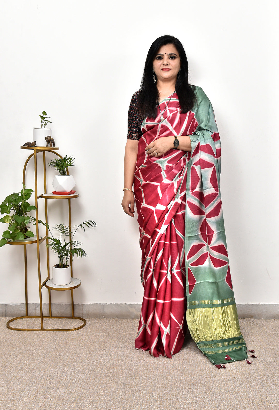 FEBA : HANDMADE CLAMP DYED MODAL SILK SAREE WITH TISSUE PALLU