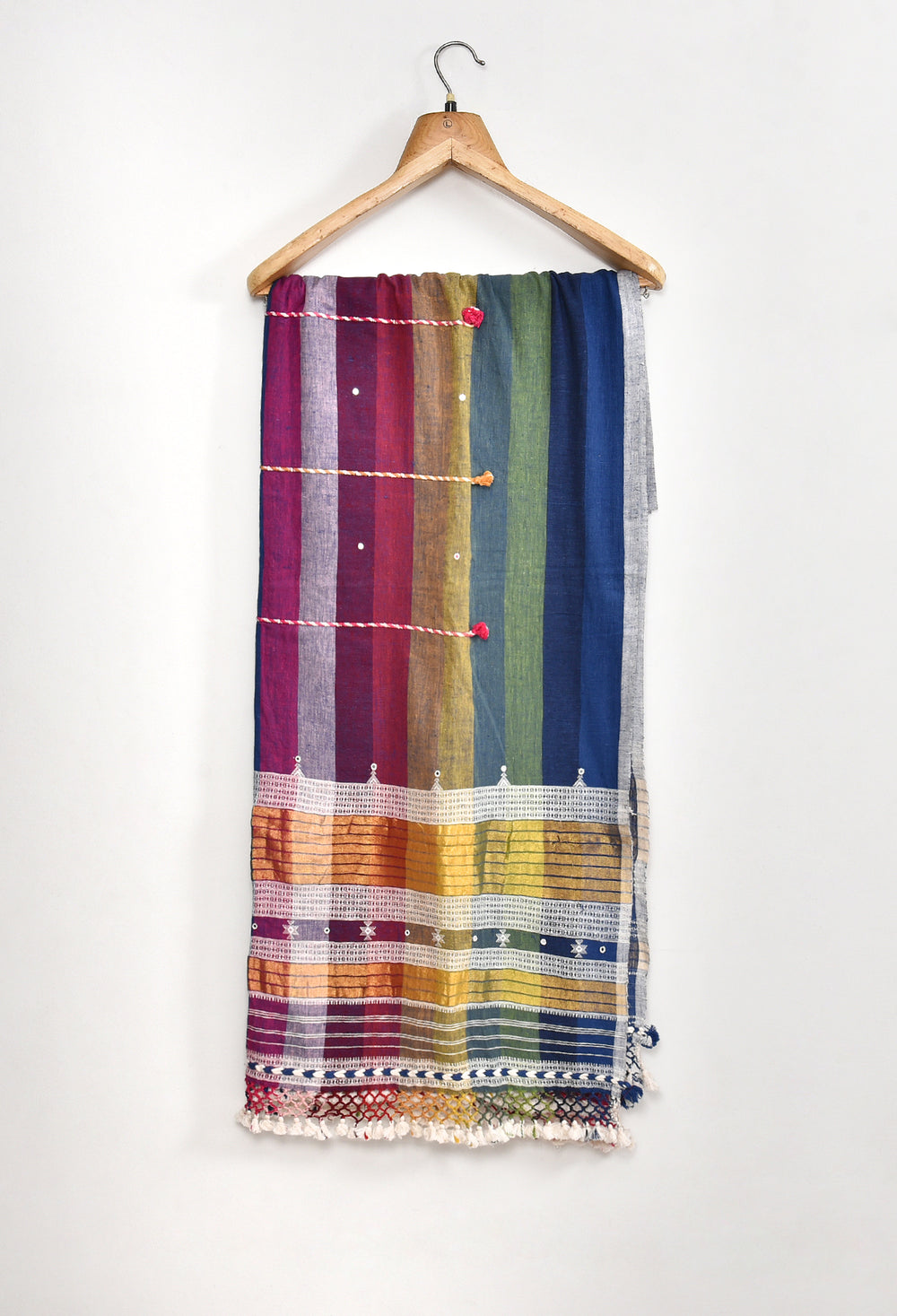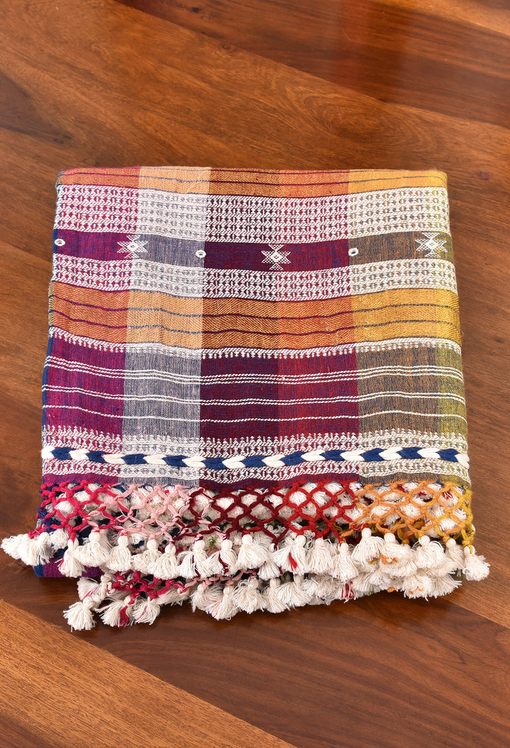 Fine quality kutch bhujodi hand weaving organic kala cotton dupatta with tassels. Kala cotton is the original pure old world organic cotton of India and it is one of the few genetically pure cotton species remaining in India. Softer feel, breathes easy.