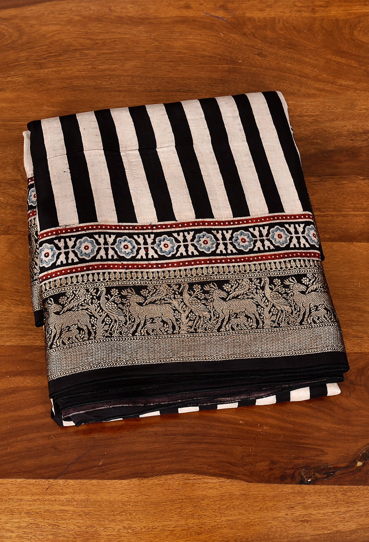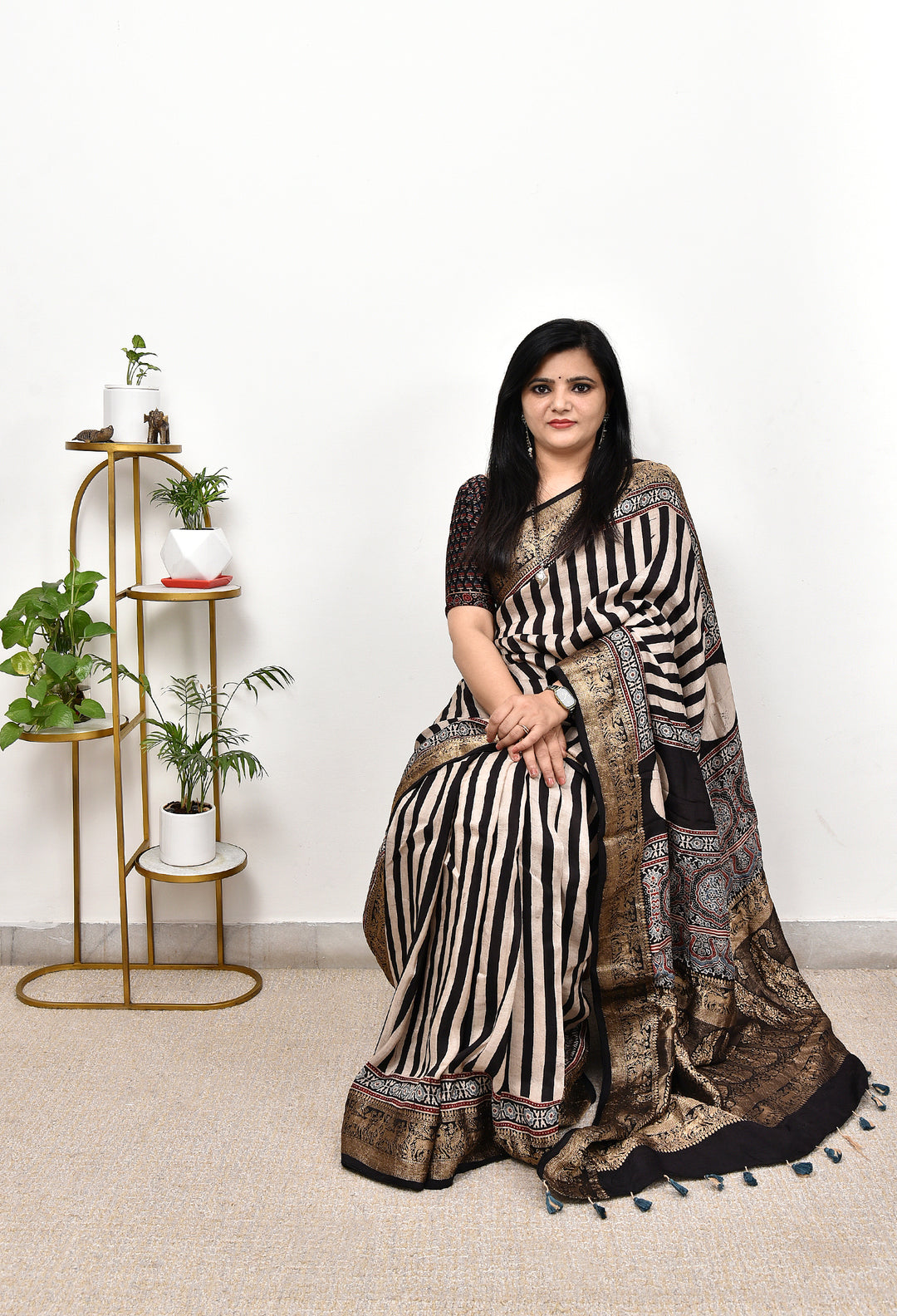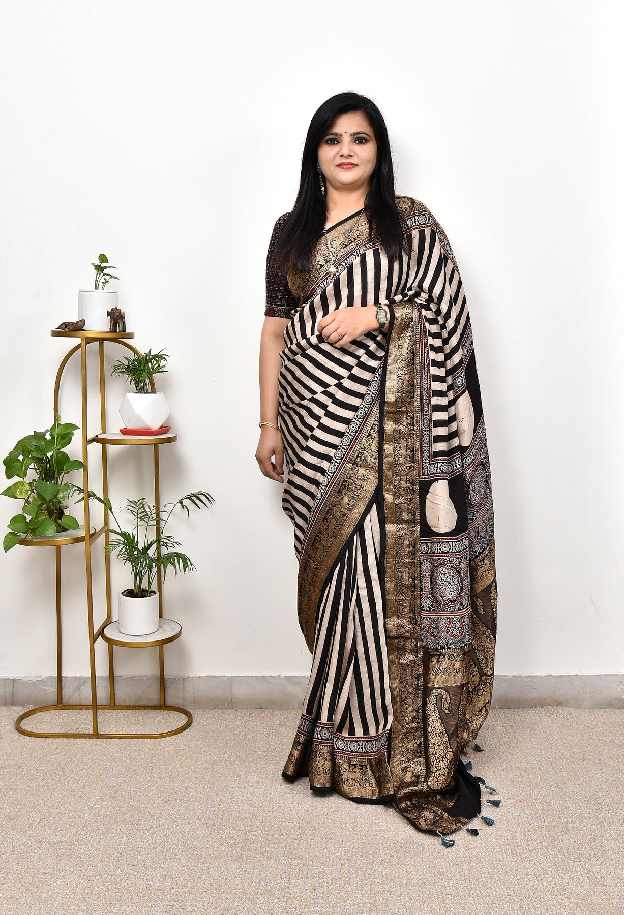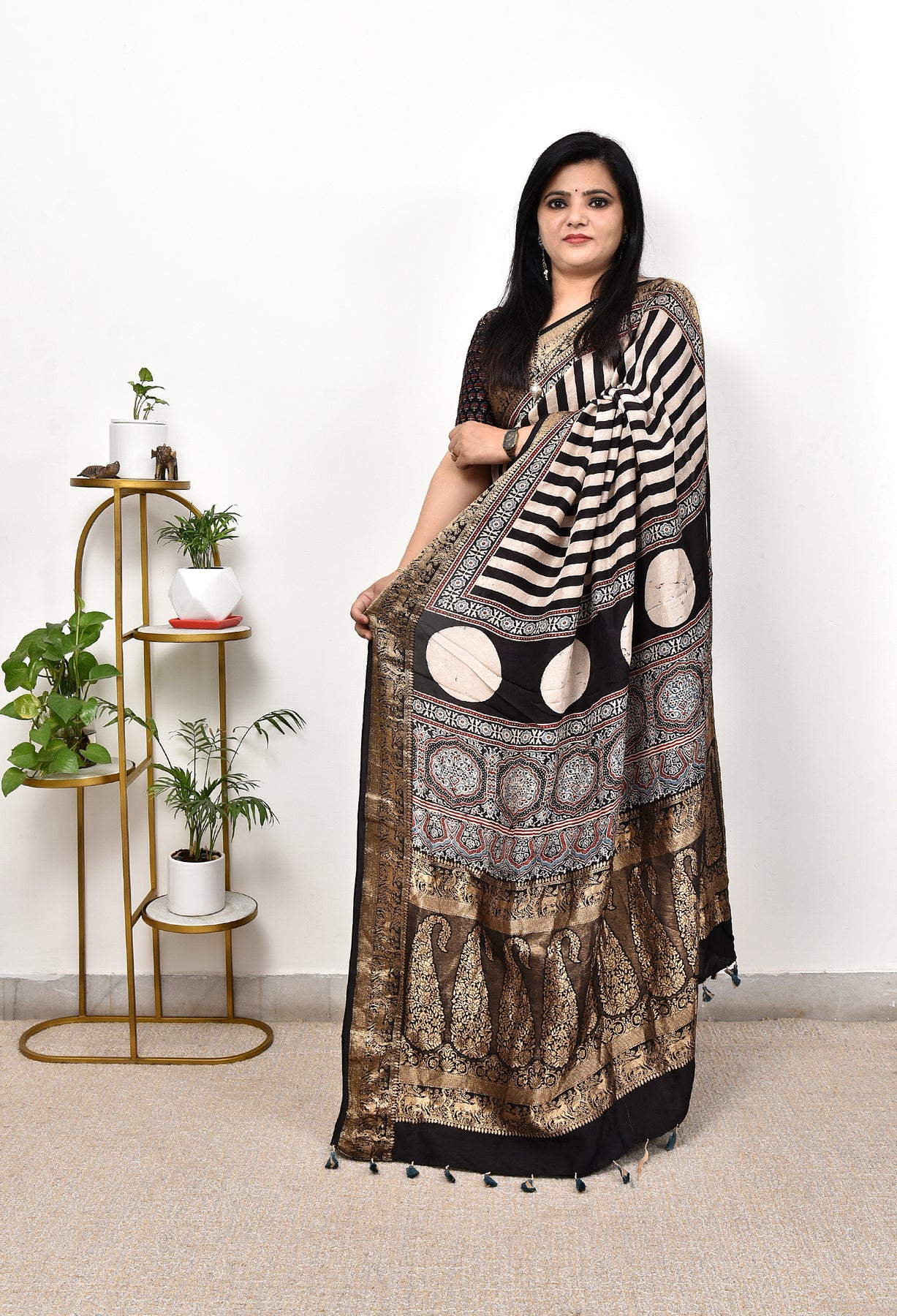 JASODA : AJRAKH DOLA SILK SAREE WITH NAKSHI ZARI PALLU