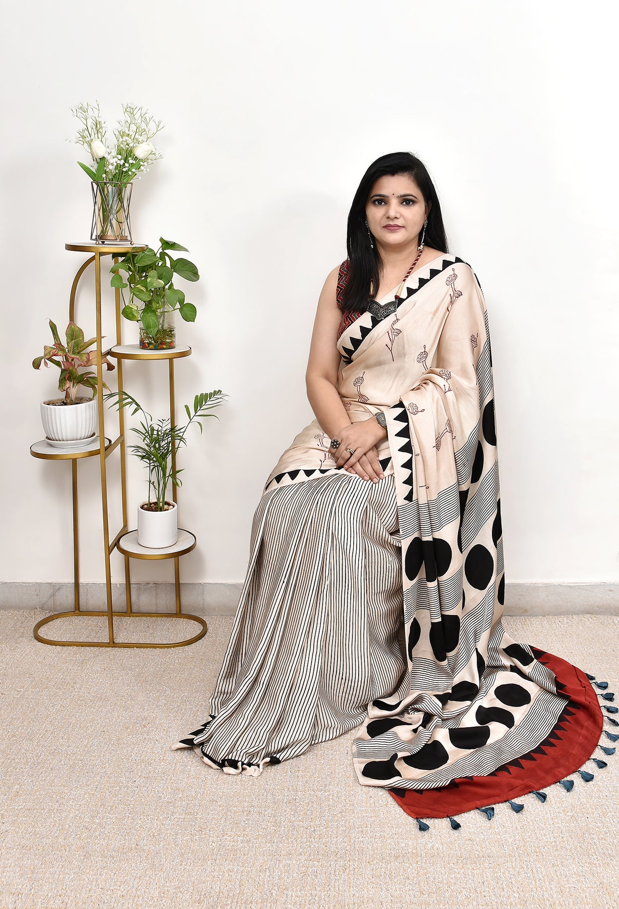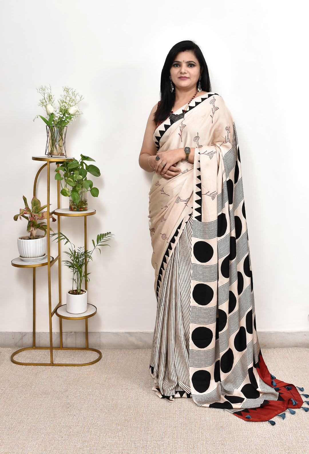 NAINA : AJRAKH HANDBLOCK MODAL SILK SAREE