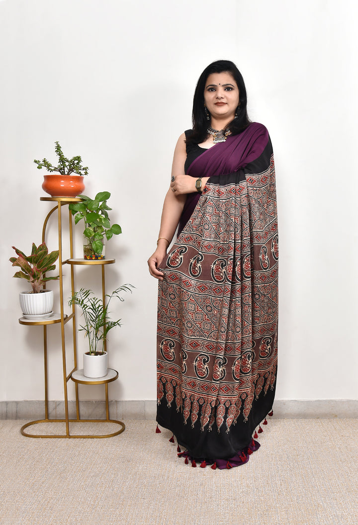 RESHMA : AJRAKH PALLU MODAL SILK SAREE